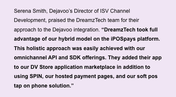 Whether you’re an ISV, ISO or reseller, this integration is another example of how Dejavoo empowers its partners to deliver modern, future-ready payment solutions.