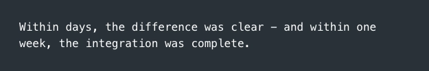 We were looking for a partner, one that offers strong API support, operational reliability, and a collaborative approach to long-term growth.